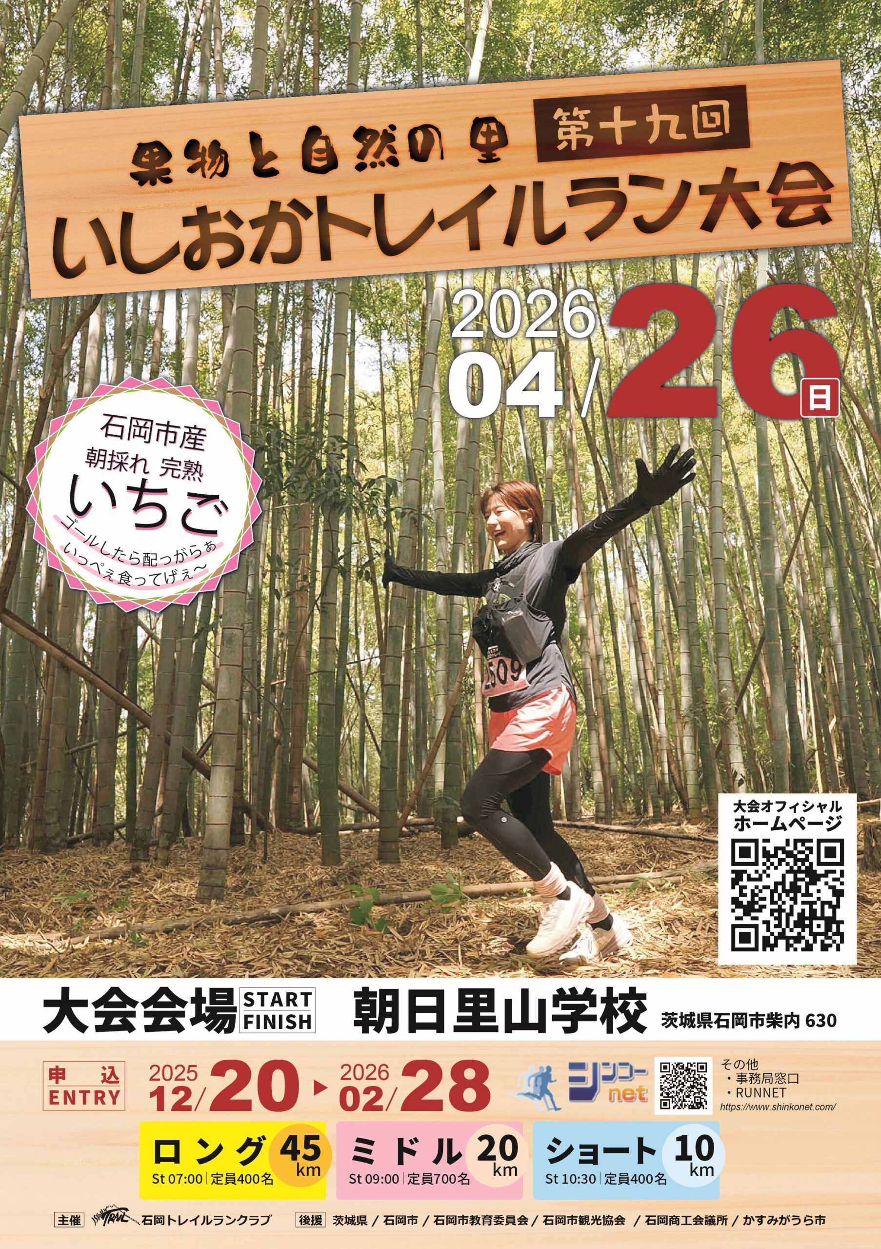 2026年4月26日(月)開催。 茨城県石岡市柴内の朝日里山学校を発着点に新緑の里山を駆け抜ける「いしおかトレイルラン大会」。 募集は2025年12月20日から開始となります。 ロング:45km ミドル:20km ショー […]